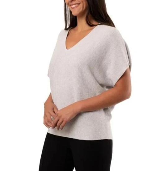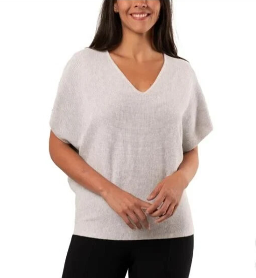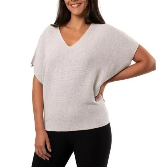 Cyrus Women's V-Neck Dolman Waffle Texture Soft Lightweight Sweater Size: Small Color: Gray Content: 77% Rayon / 23% Nylon