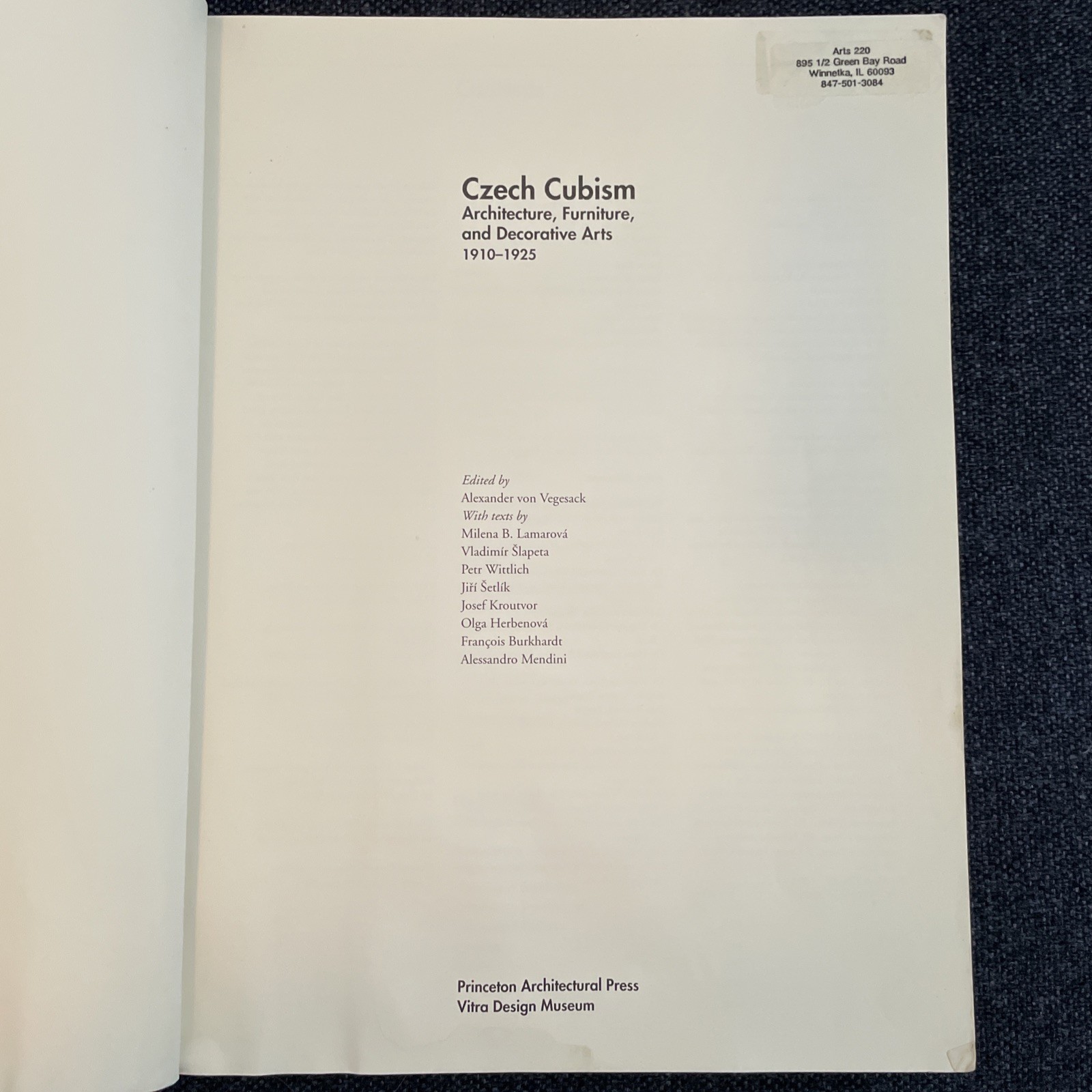 The product is a book titled "Czech Cubism: Condition: some water damage to cover and first page. Otherwise in good used condition. Architecture, Furniture, and Decorative Arts 1910-1925" by author Alexander Von Vegesack, published in 1996 by Princeton Architectural Press. This comprehensive catalogue for an exhibition presents a collection of European cubist movement in the arts, specifically focusing on Czech architecture, furniture, and decorative arts from 1910 to 1925. With 344 pages and dimensions of 11.7 x 8.7 inches, this trade paperback offers a detailed exploration of Czech Cubism in the early 20th century.