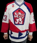 Czechoslovakian National Team Ice Hockey Jersey, Canada Cup Czechoslovakian Jersey from the 1980's and 1990's. Heavyweight mesh, all sewn-on twill numbers and letters, Awesome 'Canada Cup' embroidered patch. Overall in Very Good condition. Size is Men's Large, see exact measurements in photos. Item in the profile is exactly the item you will receive. Ships for free. Hangs beautifully and looks great! Note: This Jersey is part of the FAVA Collection being presented by TNC Collections. View the other listings of TNC Collections of authentic and vintage athletic jerseys.