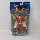 The product is a 1999 DC Comics Shazam action figure with a display stand. It is part of the DC Universe franchise and is new in its original packaging. The action figure features the iconic superhero Shazam, making it a collectible item for fans of DC Comics. Please refer to photos for condition!