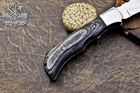 Custom Hand Made D2 STEEL HUNTING BACK LOCK FOLDING KNIFE WITH PAKKA WOOD HANDLE We offer a shipping discount for More then one purchased . And discount will be apply on combine invoice, Discount will not apply on separate payment. ITEM DETAILS OVER ALL LENGTH 7 - 8 inches long (Approx) HANDLE LENGTH 3.8 - 4 inches long (Approx) BLADE LENGTH 3.1 - 3.3 inches long (Approx) BLADE HARDNESS 58-60 HRC Which Holds The Sharp Edge For Long Time. HANDLE PAKKA WOOD COVER LEATHER SHEATH This Awesome custom made KNIFE has a nice hand forged with the combination of 4340 & 1080 steel. HOW OUR DAMASCUS IS MADE: All our Damascus is real and not just an acid etch. Damascus is a mixture of 1080HC and 4340 nickel carbon. You heat them up together and then fold the bar over and over to get the desired layers, ours are 396 layers. Then you burn the blade in acid, and it turns the nickel satin color and the high carbon turns blackish gray. This is how the layers are exposed to show the layers of the new steel created coined "Damascus". All Damascus is acid etched to show the layers. If you high polish the metal it will be shinny satin like all steels. Only after you burn the sides of the blade with acid do you see the layers of the two steels. Makes sense? After we make our knives we high polish the handles and put an edge on the blade. The high polishing buffs off the acid burned layer of the handle, and the blade edge is sharpened and the acid burned edge becomes satin. You can re-burn the tang of the blade near the handles and the edge of the blade and it will show the layers once more. All our knives are hand made, durable and unique ***** YOU WILL RECEIVED THE SAME KNIFE Qality Standards Our Damascus blades are made from high quality non-stainless steels which rival or exceed any Damascus blade made from the 10 series with 4340. Our Damascus combination has taken years to perfect and has been tested under a variety of application which will offer professional performance in categories of toughness, strength (lateral stress) and edge honing and holding ability. In a 5 spot Rockwell test our blades will average near or close to 58 which offers a perfect balances between its toughness and strength.Our blades due to carbon content need to be regularly treated with wax and/or 3 in 1 oil to maintain its superior quality. Questions if you have any question feel free to send us message we aim to answer all questions within 24 hours Feedback If you are not satisfied with our service please contact us before leaving any negative or natural feedback. We will resolve all issues as quickly as possible. Disclaimer We are not responsible for any injuries associated with the use of our tools. Our products are intended for legal use only by responsible buyers. Therefore, we will not sell our products to anyone under the age of 18. Before bidding please check your country laws as some countries Custom don't allow this. If your purchase is held by Custom Authorities in your country/State we will not be responsible for that and no refund will be issued Shipping We offer a 20% shipping discount for More then one purchased . And discount will be apply on combine invoice, Discount will not apply on separate payment We ship within 24 hours after receiving complete payment but this can be delayed due to week ends or Governments and Religious Festivals . . This is beyond our control and we apologize for this inconvenience. Precautions Our Tools are very sharp so open and use them very carefully We are not responsible for any injuries associated with the use of our tools Tips to Care knife 1. NEVER STORE YOUR KNIFE FOR LONG TIME IN LEATHER SHEATH. 2. LEATHER CAN ABSORB WATER, WHICH WILL RUST THE KNIFE. 3. ALWAYS CLEAN THE BLADE AFTER USING WITH OIL OR WAX