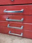 Please read entire description before purchasing. This is a stock picture, some will be in different condition from the one on the main picture. Vintage Disston My Buddy Tools toolbox replacement drawer handle pull. This auction is for one drawer handle pull only, not the toolbox shown in the pictures. The toolbox is shown for reference only and not included. These are metal and the size is about 4.5" wide, but the size you need to consider is 4" from center of screw to center of the other screw. Any questions? Flaws, these are vintage, so please keep that in mind, they may have pitting, scratches, chrome finish issues including chrome bubbling, dents dings, etc. Please ask questions before buying. Comes with mounting screws. This is a stock picture, so may vary from one to another. Originally came off a Disston My Buddy toolbox, but is compatible with others that take the same size. You get one drawer pull. #D20