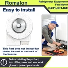 DA31-00146E Refrigerator Evaporator Fan Motor Fit for Sam-Sung Refrigerators Replaces AP4136569 1486536 PS2495833 by Appliancemate Description Speed: 2520 RPM,Watts: 3.21,Amperage: 0.27,Voltage: 12 VAC Works with the following models: RFG238AABPXAA0000,RFG238AAPNXAA0000,RFG238AAWPXAA0000,RS267L BBPXAA0000,RS267TDBPXAA0000,RS263TDRSXAA,RFG298AABPXAA,RS265TDBP/XAA,RF23HCEDB BCAA0000,RF23HCEDBWWAA0000,RF26VABBPXAA0000,RF26VABPNXAA0000,RF26VACBPXAA0000, RF26VACPNXAA0000,RF26VACWPXAA0000,RF26XAEBPXAA,RF26XAEPNXAA,RF26XAEWPXAA etc. Fixes the following symptoms: Fridge section is too warm, fridge section is too cold, freezer section is too warm, freezer section is too cold, leaking water, frost buildup, unusual noises. Please Note:This is intended as a guideline only, as other items can cause the same symptoms. This part is also known as a blower motor. Safely store any food that could deteriorate while the power is off and unplug the refrigerator before installing this part. Wear work gloves to protect your hands. Features: Parts Number:DA31-00146E Refrigerator Evaporator Fan Motor. The evaporator fan motor circulates air through the fresh food compartment for efficient cooling., 2520 RPM,Watts: 3.21 ,Amperage: 0.27 ,Voltage: 12 VAC Replaces Parts:2030145 DA31-00220A AP4136568 AP206 PS4138376 PS2495833 DA32-00006G DA32-00006U DA32-00006B DA32-00006D Repair Symptoms:Fridge section is too warm, fridge section is too cold, freezer section is too warm, freezer section is too cold, leaking water, frost buildup, unusual noises. This Part does not include fan blade, located in the back of the freezer and circulates air over the coils,circulates air through the fresh food compartment for efficient cooling Premium Quality:The replacement part is made from durable high quality material and well-tested by the manufacturer ,meets OEM standards ,ensure long-lasting and effective performance.Easy to install,just spend little money to fix your machine. Saves your money from the appliance guy! Unplug the refrigerator before installing this part. Before installing the product, turn off the power and wear work gloves to protect your hands About Us:We attach great importance to your shopping experience. If you need any help during the shopping process, please send us an email. Product Details: Brand: Appliancemate Speed: 2520 RPM Voltage: 12 Volts Horsepower: 3.21 Watts Material: Metal Model Number: B-DA31-00146E Manufacturer: Appliancemate UPC: 700884006388 Brand Name: Appliancemate Voltage: 12 Volts Horsepower: 3.21 Watts Speed: 2520 RPM Item Weight: 7.4 Ounces Material Type: Metal Handling We will ship all orders within 3 business day of payment. Delivery We Do Not Ship Outside of the Continental US. Return Policy All items qualify for returns within 30 days of receipt. Buyer is responsible for return shipping on any item that is not damaged. Feedback We take our reputation seriously, we buy and sell online, so we understand the value of trust. If you are unsatisfied with your order, please contact us and we will work with you to resolve it to your satisfaction.