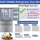 DA97-08406A, DA97-08406B/C Refrigerator Door Shelf Bin (Right) Fit for Samsung RF4287/RF4289 Series Refrigerator Replacement Parts,Replace AP4578480, 2051375, PS4175803, EAP4175803 Fridge Shelf Part Description DA97-08406A, DA97-08406B/C Refrigerator Door Bin Shelf Replacement for samsung RF4287/RF4289 Right Side Door, Replace AP4578480, 2051375, PS4175803, EAP4175803, DA63-05392B/A, DA63-05391 Features: Replace Part -DA97-08406A refrigerator door shelf can replace DA97-08406A, DA97-08406C, DA97-08406B, 2051375, AP4578480, PS4175803, EAP4175803. This door litter basket only fits on the right door of a Samsung brand refrigerator. The transparent part of this Samsung shelf has the part number DA63-05392A or DA63-05392B, and the white part has the part number DA63-05391 Compatible Models This Samsung replacement parts door shelf compatible with Samsung models from the "RF4287" "RF4289" series - RF4287HARS/XAA, RF4287AARS/XAA, RF4287HABP/XAA, RF4287HAPN/XAA, RF4287HAWP/XAA, RF4289HARS/XAA, RF4289HBRS/XAC, etc. (Important: If your refrigerator door bin model begins with "RFG297," "RFG298," "RFG296," or "RFG293," you need DA97-06419C. Models starting with "RF260", "RF261", "RF263" will require the DA97-12650A.Models starting with "RF25", "RF26", "RF4267" will require the DA97-11520B instead). If you are not sure if this door basket is suitable for your refrigerator, please contact us to check compatibility Compatible Models This Samsung replacement parts door shelf compatible with Samsung models from the "RF4287" "RF4289" series - RF4287HARS/XAA, RF4287AARS/XAA, RF4287HABP/XAA, RF4287HAPN/XAA, RF4287HAWP/XAA, RF4289HARS/XAA, RF4289HBRS/XAC, etc. (Important: If your refrigerator door bin model begins with "RFG297," "RFG298," "RFG296," or "RFG293," you need DA97-06419C. Models starting with "RF260", "RF261", "RF263" will require the DA97-12650A.Models starting with "RF25", "RF26", "RF4267" will require the DA97-11520B instead). If you are not sure if this door basket is suitable for your refrigerator, please contact us to check compatibility 365 Day Clients Services OEM DA97-08406A Door rack basket bin offers 365 days 100% refund, free return and exchange service. If the Samsung door frame you received is found to be damaged or other quality issues, do not rush to leave a negative sale comment, please contact us, we will definitely give you a satisfactory solution Product Details: Manufacturer: Edovaf Part Number: DA97-08406A, DA97-08406B/C Item Weight: 1.63 pounds Product Dimensions: 13 x 9 x 3.75 inches Country of Origin: China Item model number: DA97-08406A, DA97-08406B/C Included Components: 1 Pack DA97-08406A Door Shelf Bin Batteries Included?: No Batteries Required?: No Warranty Description: 1 year Date First Available: June 11, 2024 Handling We will ship all orders within 3 business day of payment. Delivery We Do Not Ship Outside of the Continental US. Return Policy All items qualify for returns within 30 days of receipt. Buyer is responsible for return shipping on any item that is not damaged. Feedback We take our reputation seriously, we buy and sell online, so we understand the value of trust. If you are unsatisfied with your order, please contact us and we will work with you to resolve it to your satisfaction.