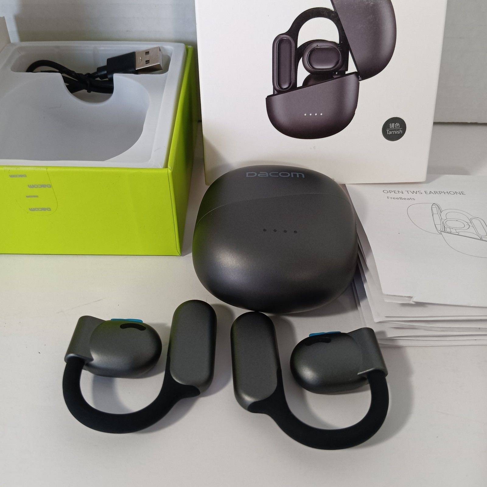 This DACOM Open Ear Headphones Bluetooth 5.3 is OPEN BOX, NEVER USED. True Wireless Open Ear Earbuds 45 Hours Playtime Open Ear Design OPEN BOX GREAT CONDITION. No FLAWS to NOTE. ALL ITEMS ARE SOLD AS IS. PLEASE SEE IMAGES AND ASK ANY QUESTIONS PRIOR TO PURCHASE. Pet & Smoke free home. All sales are final. SKU: PL199