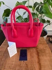 An absolutely gorgeous Dagne Dover Petite Tote in the Siren colorway. I cannot fully capture the beauty of this color accurately, but it's that shade of red that would classify as the perfect lipstick color. This tote is classy, yet sturdy and is made of quality coated canvas, which is the best material to travel with since it does not scratch or stain easily and has a genuine leather trim. This bag was barely used and as you can see in the photos, it is in remarkable condition. Tags are also included (see photos) as well as the detachable crossbody strap. This can fit your keys, wallet, extra camera battery, toiletries, a book and pens. 100% Genuine Leather Trim Detachable Adjustable Crossbody Strap Coated Canvas Body/Interior and Zinc Alloy Hardware Petite Tote Specs: 8"L x 7 ¼"H x 3 ¾"W , 4" handle drop, 1.3lb weight Crossbody Strap Drop Length: 22" – 23 ½” There are no holes or tears; as stated before, this is in very condition. (see photos) PLEASE NOTE 🍃 Please take your time to review the photos closely as they are part of the item's description. We always try to present colors as accurately as we can, but keep in mind that colors may show up differently on different devices. We do our best to take all photos in natural light during the day, so as to ensure that any noticeable flaws are visible in the best lighting. 🍃 We include written measurements in our descriptions where applicable and also show the measurements in the photos. 🍃 We pack everything as carefully as we can and all orders come from a clean, pet-free, smoke-free space. 🍃 All of our items are sold as is. We do not accept returns. If you have any questions or need to see another photo or two, feel free to reach out; we are more than happy to help! Warmly, Tamy (Narrow Path Expo)