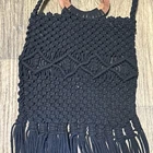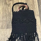 This beautiful handbag by Danielle Nicole is a must-have for any fashion-forward woman. The black macrame crochet design is accented with fringe detailing, making it a perfect accessory for a party, cocktail event, or casual day out. The cross-body strap allows for hands-free convenience, while the double handles provide added grip. The small size makes it ideal for carrying your essentials, and the lined interior ensures your belongings stay safe and secure. This handbag is part of the DANIELLE NICOLE Black Macrame Wood Fringed Handbag Crossbody product line, and it comes with other strap accessories for added versatility. The hipster, designer, beach, hippie, bohemian, boho, and modern theme make it a perfect addition to any wardrobe.