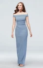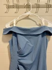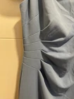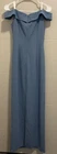Own the spotlight with this stunning David's Bridal bridesmaid dress in slate blue that originally retailed for $119.95. The off-shoulder Bardot top design and sleeveless style give it a modern feel, while the ruched side detail adds an elegant touch. Made with high-quality polyester, this dress is comfortable and easy to wear for any wedding or formal occasion. Available in a size 6, the stretch crepe material allows for a flattering fit. Make heads turn with this gorgeous dress that will have you feeling confident and beautiful all night long!
