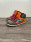 Elevate your footwear collection with the vibrant DC Rebound High-Top Sneakers, perfectly crafted for women who appreciate a blend of style and comfort. These sneakers feature a striking colorblock design in a kaleidoscope of hues, sure to make a statement with any outfit. The leather fabric upper provides durability while the high-top shaft ensures a secure fit, making them ideal for skateboarding or simply navigating the urban landscape. The lace-up closure offers a snug and adjustable fit, while the standard shoe width accommodates a variety of foot sizes. The robust rubber outsole delivers excellent traction, and the leather insole ensures your feet stay comfortable throughout the day. With a nod to the nostalgic '90s and early 2000s skate culture, these sneakers embody a retro vibe that's both timeless and trendy. Good condition! Minor holes in the material where you ankle goes - please see photos. Otherwise, excellent condition!