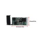 Product Description DC 3.6V~24V Mini Wireless RF Remote Control Light Switch Receiver Module Part 433mhz DC 3.6V 5V 12V 24V 1CH LED Lamp Controller Micro Receiver for Remote Control Switch Specification: Working voltage: DC 3.6V~24V Maximum load: 2A Static current: <5 mA Working frequency: 433MHz Reception sensitivity: <-108dBm Size: 25.5 mm x 13mm x 5mm (length × width × high) Mini size support coding format 1527 learning code Input: DC 3.6V ~ DC 24V Output: DC 3.6V ~ DC 24V Modulation mode:ASK (superheterodyne) Appearance size: 25.5mmx 13mm x 5mm (length × width × high) Number of stored remote controls: ≤ 10 Working mode: Momentary, Toggle, Latching Mode Learning style: Learning Button Working temperature: -20 degrees 80 degrees. Features: ·Application environment: Wireless control LED lamp string, Christmas tree light string, Light control switch. ·Long range working voltage ·Ultra low power,High sensitive response .Operating Voltage: DC 3.6V-24V .Encoding : EV1527 Learning code About Working mode: Momentary:Push the remote button , the relay connects, release the remote button , the relay dis-connects. Toggle:Push once the remote button , the relay connects , push twice the remote button , the relay dis-connects. Latching:Push the remote button A, the relay connects, push the remote button B, the relay dis-connect. Tiem delay mode :Push the remote control button , the relay connects , from when release the remote button , after 5s or 10s or 15s or 20s , the relay disconnect automatically. Automatic energize when power on mode: when power supply, the relay connects. Clearing the code : After push the receiver's learning button 9 times , the receiver Clear all the remote control data in its memory. When the LED flashes for 5 few times,it indicates that the clear function is completed. (After cleared the code in the receiver,all the remote control must study from receiver onece again to restart.) Receiver operating mode Settings 1.Learning the code :(momentary) Push the learning key on the receiver once time ,it comes into momentary setting mode. Wait for a moment ,the LED will be on, it comes into learning state .Push the remote button , LED indicator on the receiver board will flash 3 times and then come off ,learning successfully. 2.Learning the code : ( Toggle ) Push the learning key on the receiver twice time , it comes into toggle setting mode Wait for a moment ,the LED will be on , it comes into learning state .Push the remote button ,LED indicator on the receiver board will flash 3 times and then come off, learning successfully . 3.Learning the code :( Latching ) Note: When you choose for latching mode ,in order to learn more remote control ,you need to learn two different button,the first time learnt is for “ON”, the second time learnt for“OFF”. For example : button A = ON , button B = OFF ,Push the learning key on the receiver triple time , it comes into latching mode .Wait for a moment , the LED indicator on thereceiver board will be on, Push the remote button A,LED flash for 3 times .Push the remote button B .LED indicator flash for 3 times and then come off, learning successfully . 4.Learning the code :( Time delay mode ) Push the learning key on the receiver forth time , the time dealy for 5 seconds. Push the learning key on the receiver fifth time , the time delay for 10 seconds. Push the learning key on the receiver sixth time , the time delay for 15 seconds. Push the learning key on the receiver seven time , the time delay for 20 seconds. The LED indicator will be off. Push the remote button , LED flashes and off ,learning successfully. 5.Learning the code : (Automatic energize when power) Push the learning key on the receiver eight times , it comes into setting mode Wait for a moment, the LED will be on , it comes into learning state .Push the remote button,LED indicator on the receiver board will flash 3 times and then come off, learning successfully. NOTE: The system can store for 20 pcs of remotes , if the remote get more than 20 pcs , the initial remote control will be lost. Package Included: 1x Mini Wireless RF Remote Control Light Switch Receiver module (1527 Encoding ); About Us Welcome to the our store! You can chat with us about anything to do with our products. we dedicated to provide best products and services. Payment All ebay verified payments are accepted, if you have any questions about the payments, you can let us know, we will try our best to solve this for you. Shipping We usually ship all packages within 24 hours after payment and 48 hours at latest for a small part of our products. Returns Always believe we can solve your questions about our products with communication. And if it comes to a return at last, the item must be intact and the same condition when you received it, also the return is only available within 30 days after delivery. Contact Us You can contact us at any time via ebay messages, we will reply at the first time in the working times. We will always be here for you! Working time: 9am to 6pm, Monday to Friday. You may also like 1.2m USB Data Cable Charger Cord Charging Line For PSP1000 PSP2000 PSP3000 4.68 AUD Watch O-Ring Waterproof Rubber Watch Back Cover Gaskets For Watchmaker Tools 5.98 AUD Dual Band WiFi Moving Antenna For ASUS Z390 Z490 X570 Motherboard 2T2R 25.98 AUD 6.85 AUD Orange Cover Cap+Spool Line Top For Black & Decker Spare String Trimmer Strimmer 7.98 AUD USB Laser Plasma Pen Mole Removal Age Spot Remover Skin Wart Tattoo Tool 13.64 AUD 5.29 AUD 3D Printer MK8 Assembled Extruder Hotend 1.75mm to 0.4mm Nozzle Heating Block I 8.98 AUD 5.29 AUD powered by