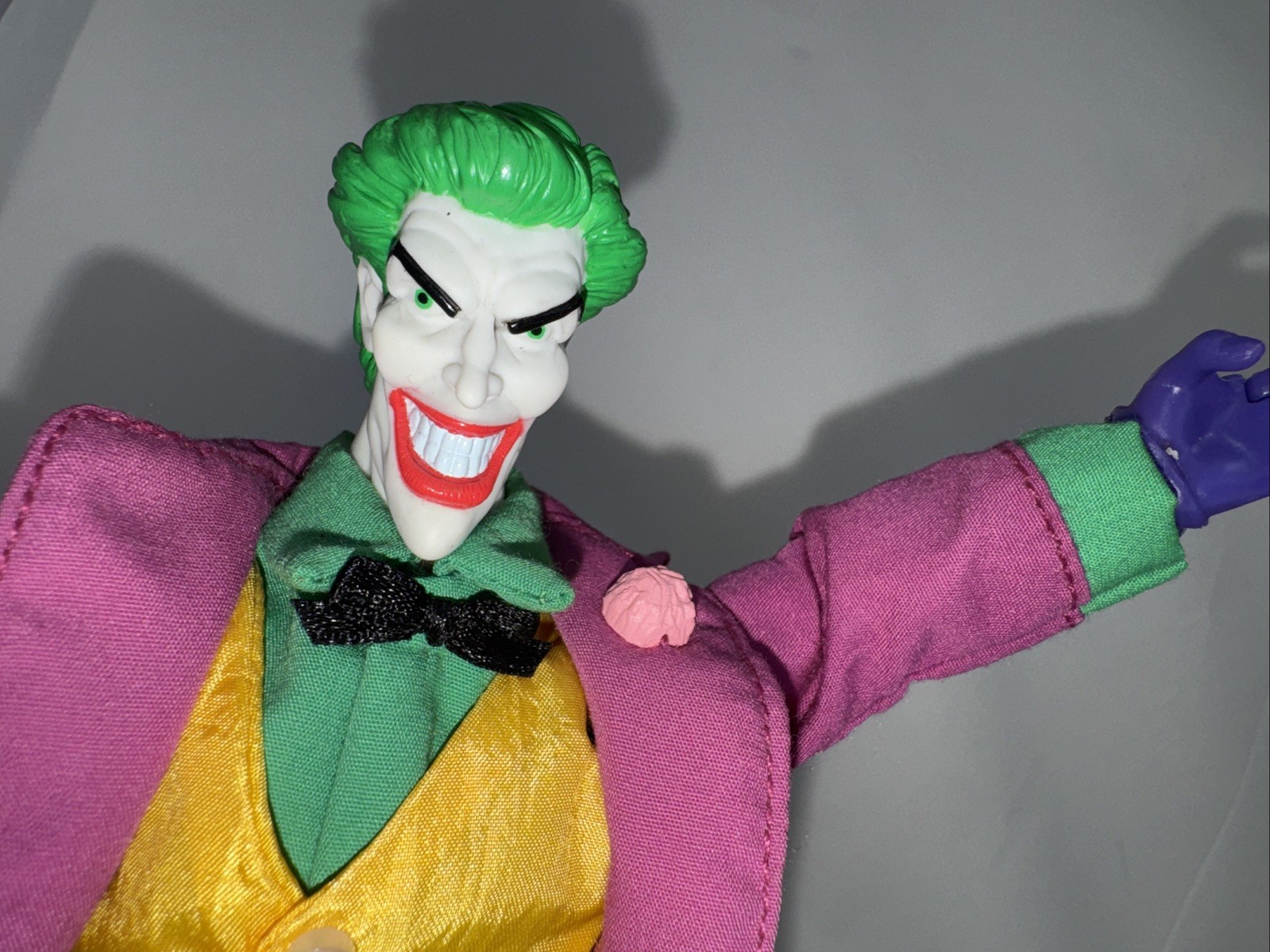 Very Good condition No damage The product is a 9.25" clothed figure of The Joker, also known as the Clown Prince of Crime, from the Batman franchise. This action figure is based on the character from the DC Comics and movies, featuring a detailed design of The Joker. Perfect for collectors and fans of Batman and The Joker, this figure captures the essence of the iconic villain and adds a unique piece to any action figure collection.