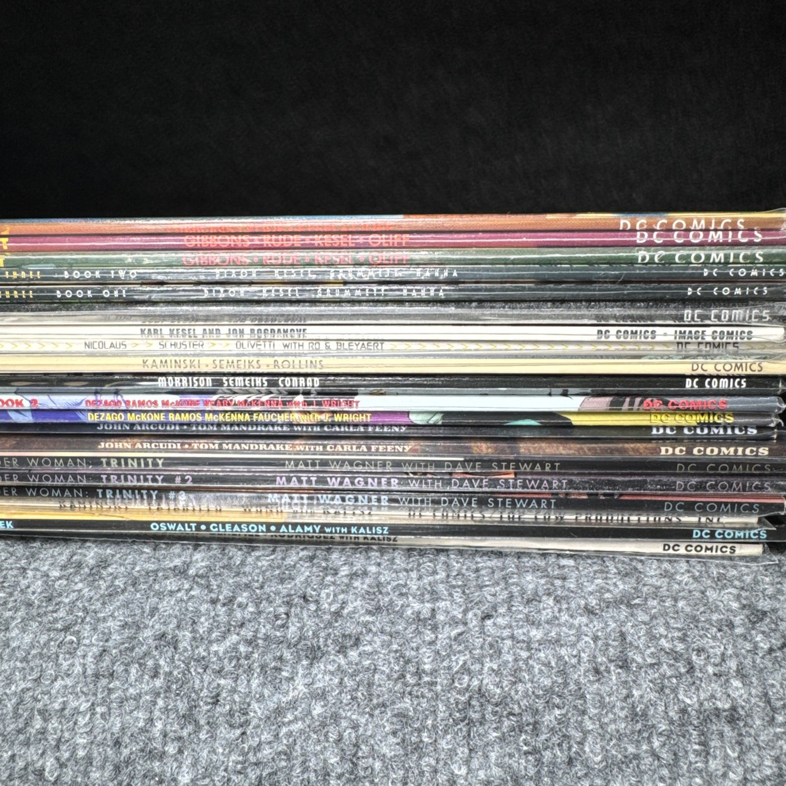 DC Justice League Graphic Novel Books Lot of 20 Paperback TPB Batman, Superman Will come with all novels shown in pictures, all are in excellent condition, will come with protective sleeves. Feel free to ask any questions about this item, all of our items come from a smoke free environment.