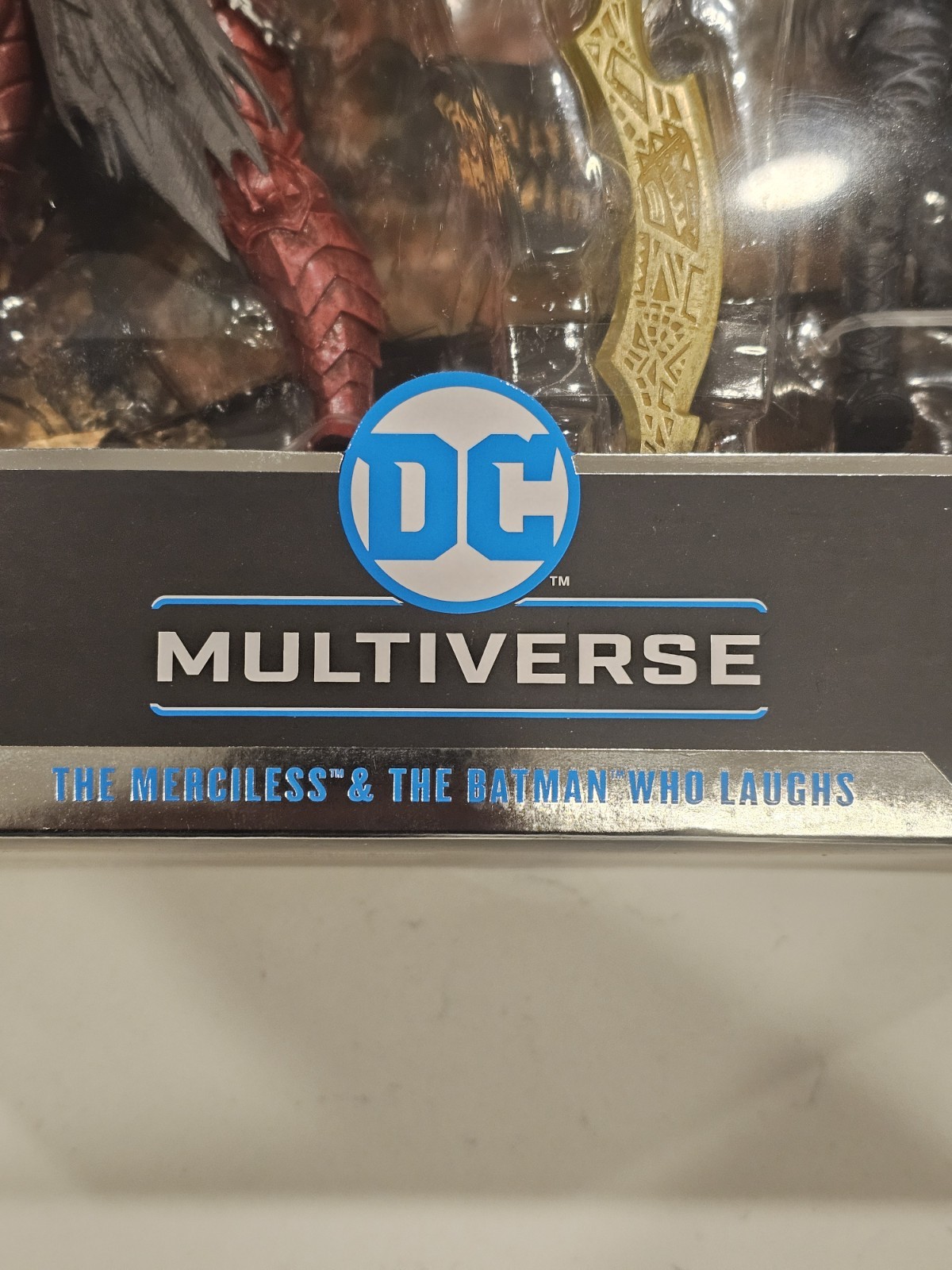 The DC Multiverse The Merciless & The Batman Who Laughs Figures 2 Pack by McFarlane Toys is a collector's edition action figure set pulled straight from the DC Comics events Dark Nights: Metal/Death Metal. This set includes detailed figures of Batman: The Merciless and The Batman Who Laughs, made of plastic material and measuring 7 inches in height. The figures come with a sword and mask/helmet as items included, and are part of the DC Multiverse franchise. This licensed reproduction is a must-have for fans of comic book heroes and collectors of action figures.