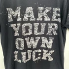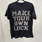 Men’s size medium DC Rob Dyrdek Skate T-Shirt Short Sleeve Graphic "Make Your Own Luck". In good used condition- small hole seen in the last pic This is a DC brand men's T-shirt in size M, featuring a graphic design by Rob Dyrdek with the theme "Skate." The shirt has a black color and short sleeves, perfect for a casual and stylish look. The graphic on the shirt says "Make Your Own Luck," giving it a motivational and edgy vibe that is popular in Y2K fashion. This T-shirt is a great choice for fans of skate culture and those looking for a trendy and comfortable addition to their wardrobe.