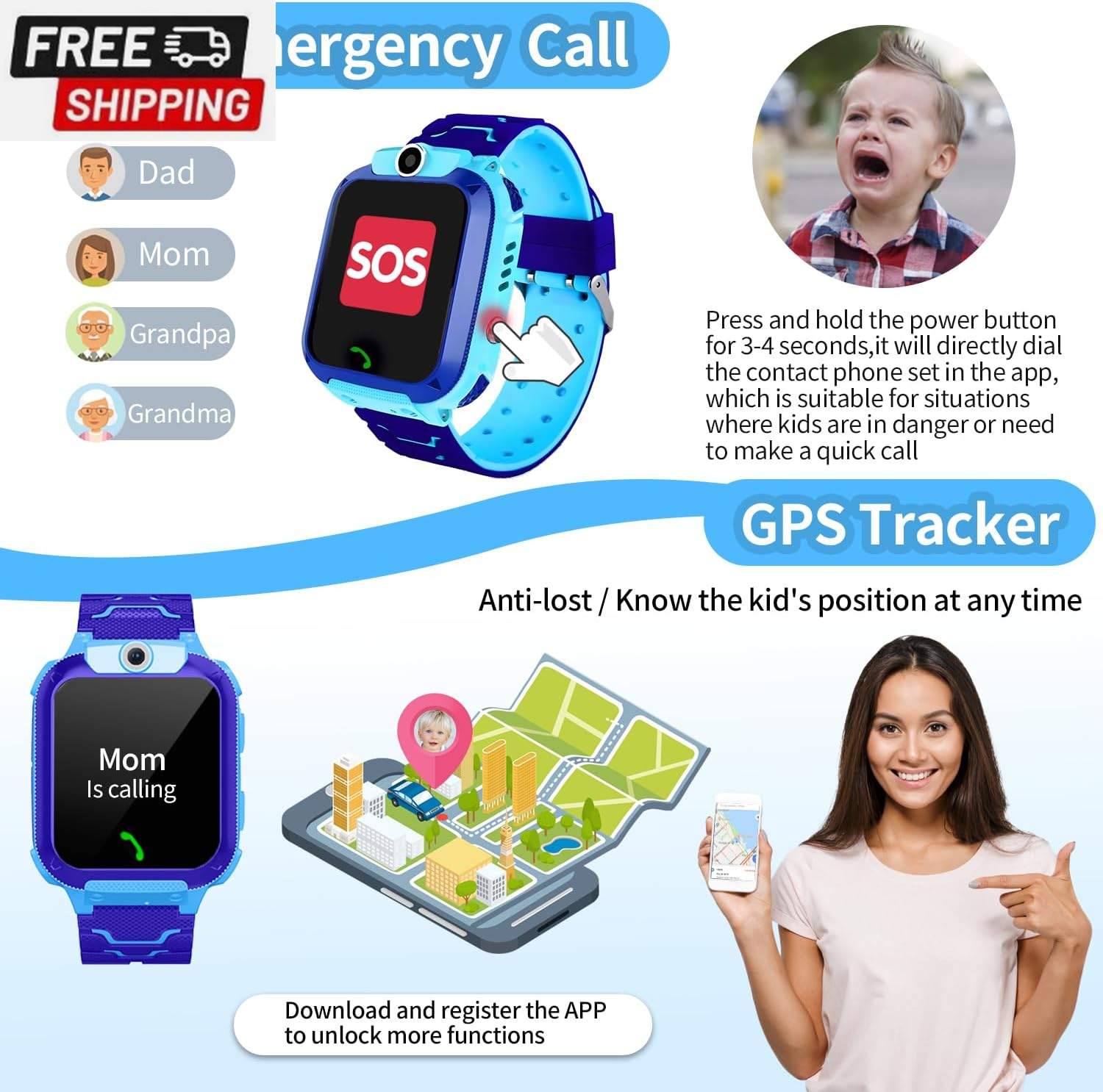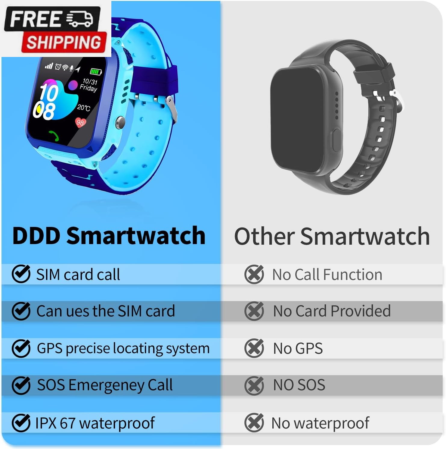 Fast Shipping On All Items 30 Days Money Guarantee Customer Support Excellent Service 100% Satisfaction Satisfaction Guaranteed DDD Kids Waterproof Smart Watch,Sim Card for Make and Receive Calls,Sos Emergency,Kids Smart Watch Birthday Gift for 3-12 Year Old Specification Battery Capacity 400 Milliamp Hours Operating System Android Wear 2.0 Battery Cell Composition Lithium Polymer Color Blue Memory Storage Capacity 512 MB Brand DDD Country of Origin China Batteries 1 Nonstandard Battery batteries required. (included) Item Weight 3.2 ounces Connectivity Technology 蜂窝网络 Model Name DHSB-01 Manufacturer DDD Special Feature SOS Button, Activity Tracker, Camera, Phone Call Package Dimensions 3.15 x 3.11 x 2.32 inches GPS GPS Via Smartphone Item Description KIDS SAFE AND ALWAYS WITHIN REACH: This watch combines satellite and cell tower tracking to be 120% more accurate than other kids smartwatches. The companion app refreshes quickly, ensuring you can instantly check on your child's location for added safety and peace of mind Durability and IP67 Waterproof kids watch: With the water resistance function, You don't have to worry about the normal use of your watch, even if you are swimming, washing your hands or exercising in the rain Powerful Battery Life:Kids watch built-in rechargeable battery that lasts more than 7 days on a full charge, the battery of this Kids watch is upgraded to 500mA, allows kids to play anywhere, anytime, and is equipped with a USB cable. Let the children enjoy a happy playtime and give them a good childhood! Great Gift for Kids: Our children's watch is designed with a 1.54-inch IPS high-definition touch screen, making it easier for children to operate. This watch introduces an interesting function: habit tracking to cultivate good habits for children. It comes in a beautiful gift box, no need to wrap it again, and you can give it to your child as a gift as soon as you receive it. A perfect birthday, Christmas, festival and holiday gift for boys and girls aged 3 to 12. SOS Panic Button :The smart watch for kids with gps tracker will make an emergency call to the preset phone numbers, when in danger, it's convenient and fast to long press the SOS button Product Description Do I need a SIM card? Choose the SIM card which match to the GSM network, SIM card must support 2G network, you can refer to opinons of the dealer. (Power off before you insert the SIM card, otherwise, the watch will not have network signal.) Which carriers can this watch work with, AT&T, T-Mobile, or other carriers? Choose a SIM card that matches the GSM network. The SIM card must support 2G network and quad-band (850/900/1800/1900) What type of SIM card can this watch use? The card type is Micro SIM crad (Please turn off the phone before inserting the SIM card, otherwise the watch will have no network signal.) What should I do if the product I received cannot be charged? For first use, please charge the charger for 4 hours to activate the battery. Avoid using a computer USB port for best performance and safety. About us We offer the best prices around on high quality products. Our E-store includes media such as books, movies, music and games while offering electronics, toys, sporting apparel, clothing, tools, general home, garden items and more. Shipping We are always working hard to ensure your package arrives as soon as possible. Please understand that some factors like weather, high postal traffic, and the performance of shipping companies are outside of our control. We offer free shipping to the lower 48 states and ship within 2-3 business days of payment, usually sooner. We do not accept P.O. Boxes. Please provide a physical address. For shipping outside of the continental USA, we only use eBay's Global Shipping Program.The item is shipped to KY and then sent to the rest of the world. International customers are responsible for all duties and taxes. Continue to check out to calculate costs for shipping the item to your country. Messages regarding eBay's Global Shipping Program MUST be directed at eBay EXCLUSIVELY. Returns We offer a 30-Day Return Policy on items in which you are not completely satisfied with. You have the option of a full-refund or an exchange of the item. No returns are available on items shipped outside of the USA Satisfaction We try over very best to make sure every customer is completely satisfied. If there's a problem, message us! We're happy to help. Payment Options Shop With Confidence