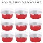 You will receive 100 packs round disposable ramekins in red color with matching clear lids, which will surely meet your different needs and make food service quick and easy. Product measures approx. 3" top diameter x 2.4" bottom diameter x 1.4" height, with maximum capacity of 5 oz Our recyclable baking cups are made of premium food-thick aluminum foil, sturdy and stable. They are faster heat conduction, waterproof and oil proof, can withstand temperatures up to 500 Fahrenheit. The plastic lids in the set can facilitate you to carry the cupcakes out DEAYOU aluminum foil ramekins are perfect for making cupcakes, cheese, puddings, souffle, creme brulee, custard, sweets, tarts, pies and more. Just put them into the oven and bake them directly without baking tray required. Simply use and discard or recycle. They are also freezer safe, suitable for storing food, meal prep These disposable muffin cups are ideal for picnic, camping, weddings, anniversaries, afternoon tea, banquet desserts, parties, get-together, various indoor and outdoor occasions. They are baking molds and also the gorgeous packing, widely used by home kitchen, restaurants, bakeries, caterers, cafes, food trucks Our cupcake baking liners can free your hand from scrubbing the residue on bake pans, save your much cleaning time, just throw away once finished and enjoy your baking time. The smooth surface makes them comfortable to hold. They are stackable for space-saving, perfect for a party or when baking a large batch