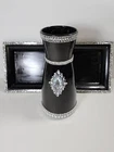DECOR SPARKLY BLING GLAM CENTERPIECE/VASE WITH TRAY FLOWER HOLDER CANDLE HOLDER. Nice centerpiece, dazzling beautiful centerpiece, sparkly elegant, centerpiece with tray, table piece, art decor craft, home decor items, home accents or candle decoration, plant decor, shop home decor, big flower vase for living room, cute home decor, home decor products, table top decor, indoor plant decor, trendy home decor, inexpensive home decor, Stunning diy wedding reception piece, diy handmade bling entertainment centerpiece, use for floral centerpiece, vase centerpiece with tray, bling glam centerpiece nice for corner stand, centerpiece makes a great bling gift, great for house warming gift, nice for living room or dining room table, can be use as a centerpiece or a vase. GREAT CHRISTMAS GIFT Note: Please view all photos before purchasing.