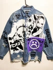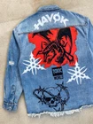 1OF1 CUSTOM DENIM JACKET SIZE LARGE -HAND SCREEN PRINTED -NO POCKETS DON’T WASH FREQUENTLY -WASH COLD INSIDE OUT - HANG DRY -DO NOT IRON PRINTS