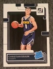 The product is a Denver Nuggets basketball trading card collection featuring various players such as Christian Braun, Michael Porter Jr., and Nikola Jokić. The cards are standard size and are made of card stock, with free shipping included. The sets consist of various NBA seasons, and the cards offer original content with features like parallel/variety, base set, rookie, and insert cards. The collection is in English and manufactured in the United States, making it a valuable addition for fans and collectors of basketball trading cards.