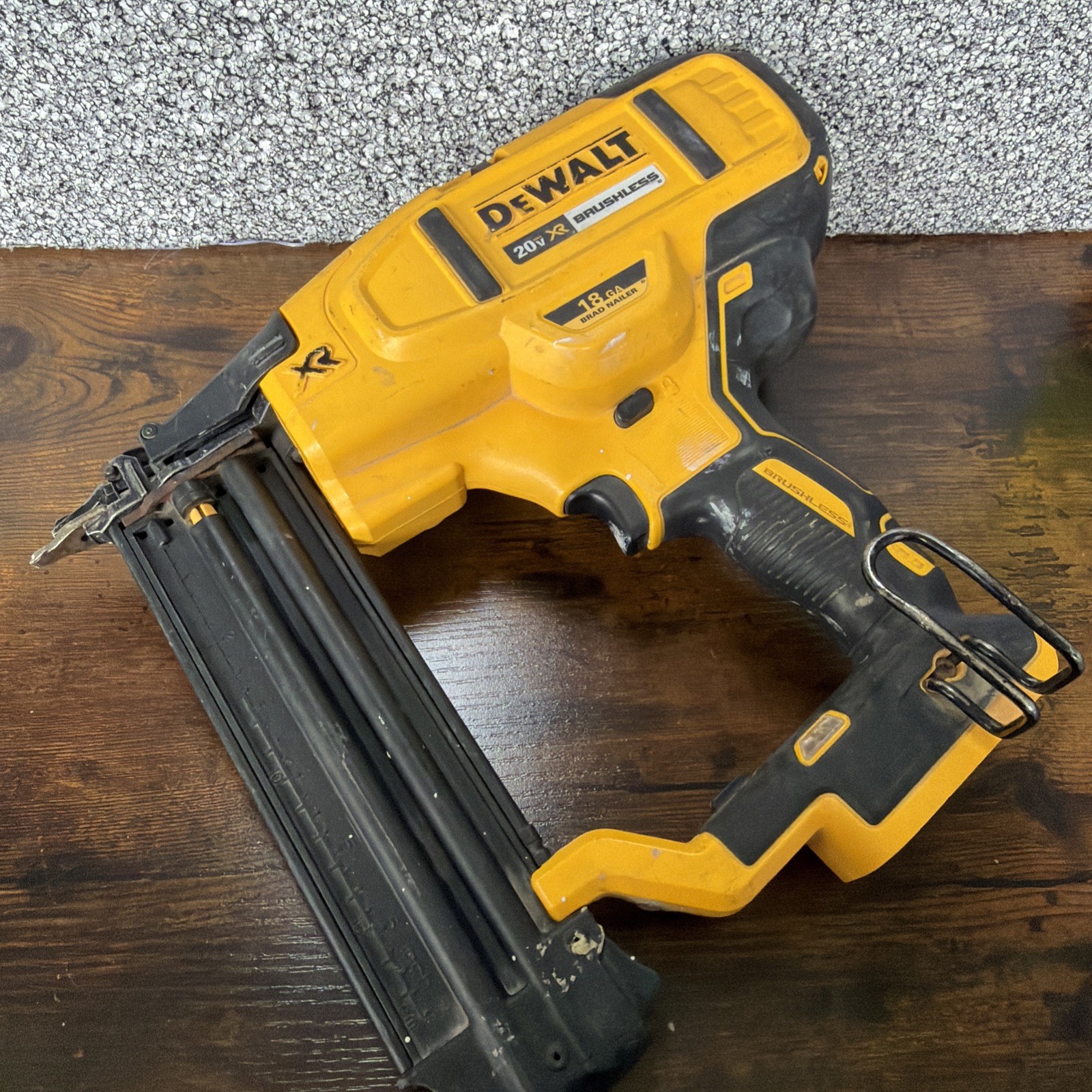 Item works…. Kinda…. Will only shoot 1 nail per trigger pull. Will not shoot while in the hold down multiple selector. Slow to shoot next nail. Takes about 5 seconds between nails to be able to shoot again. Sold as is for parts/repair. Tool only.