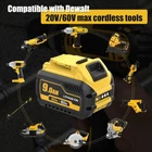 Product Description 2 Packs 9.0Ah Flex Volt DCB609 Battery Replace for Dewalt 20V/60V Max Battery Replacement for Dewalt 60v max battery DCB606, DCB606-2, DCB609, DCB609-2, DCB612, DCB612-2 Replacement for Dewalt 20v max battery DCB200, DCB201, DCB203, DCB204, DCB206, DCB207, DCB208, DCB201-2, DCB181-XJ, DCB181, DCB180 Compatible with Dewalt 20V/60V MAX Tools Compatible with Compatible with Dewalt DCD Series: DCD740, DCD740B, DCD780, DCD780B, DCD780C2, DCD780L2, DCD785C2, DCD785L2, DCD980L2, DCD980M2, DCD985B, DCD985L2, DCD985XR, DCD785C2, DCD780C2, DCD780B, DCD740C1, DCD740B Compatible with Compatible with Dewalt DCF Series: DCF883B, DCF883L2, DCF885, DCF885B, DCF885C2, DCF885L2, DCF895B, DCF895C2, DCF895L2, DCF895L2, DCF895C2, DCF895B, DCF885L2, DCF885C2, DCF885B, DCF883L2, DCF883B, DCF880C1-JP, DCF883B, DCF880C1-JP Compatible with Compatible with Dewalt DCS Series: DCS331B, DCS331L1, DCS331L2, DCS331N, DCS380B, DCS380L1, DCS381, DCS391B, DCS391L1, DCS393, DCS393, DCS391L2, DCS391L1, DCS391B, DCS381, DCS380L2, DCH214L2 Compatible with Compatible with Dewalt DCG Series: DCG412, DCG412B, DCG412L2 Compatible with Compatible with Dewalt 60V MAX Tools: DCS578X2, DCBL772X1, DCK299D1T1, DCS578B, DCS690X2, DCC2560T1, DCG414B, DCD460T2, DCG418X1, DCS389B, DCS388T2, DCH481B, DCS7485B, DCD130B, DCS520T1, DCS388T1, DCS520B, DCBL772B, DCG414T2, DCS574W1, DCS388B, DCS389X1, DCD470B, DCG418X2, DCS575B, DCS7485T1, DCS373B, DCBL770X1 Compatible with Dewalt 20v/60v max lithium ion battery charger DCB107, DCB115, DCB118, DCB104, DCB102, DCB101, DCB103, DCB119, DCB1112, DCB1800B