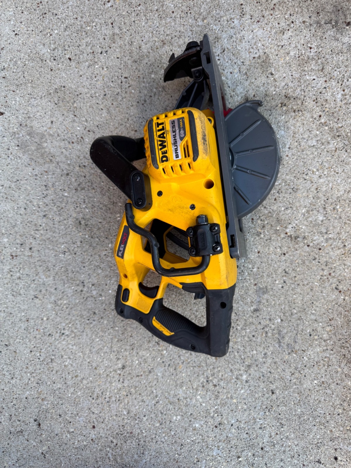 The DEWALT Flexvolt 60V Max 7-1/4" Cordless Circular Kit with Brake (DCS578B) is a high-powered, cordless circular saw suitable for cutting wood with a 7 1/4" blade diameter and 4" cutting depth. The saw features a brushless motor and Lithium-Ion battery technology for efficient and reliable performance. With a lightweight design at 8.2 lbs, this DEWALT Flexvolt model in yellow color is a versatile and powerful tool for various home and garden projects.