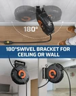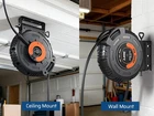 DEWENWILS 20 Amp Retractable Extension Cord Reel, 2500W Heavy Duty Power Cord Reel, 10AWG/3C SJTW Industrial Cable, 4 Grounded Outlets, 180° Swivel Bracket for Garage Workshop Construction Site Product description Rugged, Flexible & Safe SJTW Constructed with a flame retardant, tangle-free, and abrasion-resistant 10AWG/3C SJTW retractable extension cord High Power Cord 10/3C AWG The 20A electric cord reel meet your high-power or ordinary equipment usage. While the output is compatible with both NEMA 5-15P and NEMA 5-20P plugs. 4 Grounded Outlets Supports simultaneous use of four high-powered devices,durable for garage workshop construction site Flexible and Easy to Bend Won't break when you bend it sharply to ensure your safety. Thickened copper core can be bent at will with upgrade design. About this item [2500W Heavy Duty Power Reel] Rated at 125V, 20A, 10AWG, up to 2500W,retractable extension cord reel supports up to four high-demand tools at once; with a NEMA 5-20R input and compatible with NEMA 5-15P and 5-20P plugs, it’s built for serious tools and equipment [Smooth Auto-Retract System] Features an automatic guided retraction mechanism for smooth, no-tangle power cord rewind; the oversized adjustable stopper lets you lock the 30FT extension cord reel at your preferred length, ensuring controlled retraction every time [20A Circuit Breaker] With an integrated 20A circuit breaker, the 30ft heavy duty power cord automatically cut power during overloads, enhancing job-site safety; ETL listed, it’s ideal for table saws, planers, drill presses, miter saws, dust collectors, and space heater [Weather-Resistant SJTW Cord] Constructed with premium SJTW cable, this 20 amp extension cord resists UV exposure, ozone, moisture, and common garage chemicals.; the flexible, non-kinking cord remains reliable even in low temperatures for both indoor and outdoor use [Wall or Ceiling Mount Design] Includes a 180° swivel mounting bracket for wall or ceiling installation; this heavy duty power cord reel saves space, keeps cords organized, and improves workflow efficiency in garages, workshops, and professional workspaces