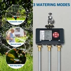DEWENWILS Sprinkler Timer 3 Zone, Water Timer with 4 Programmable Procedures, Hose Faucet Watering with Automatic/Rain Delay/Manual Mode, Outdoor Irrigation Controller for Lawn, Garden Product description Mesh filter Added metal filter that can eliminate 99% of water impurities and prevent them from entering the interior to create blockages Upgraded Leakproof Design Pure zinc integrated tap connector is durable and can prevent water leakage during use Waterproof Battery Compartment The internal rubber ring around the battery tray protects the battery from moisture Big LCD Screen With 3.4" large easy to read LCD screen, details of all functions and working statuses are displayed intuitively About this item [Easy to Program & Setup] With 3.4" large easy to read LCD screen, details of all functions and working statuses are displayed intuitively, 5 program buttons make your settings easy as adjusting a digital watch, easy to select the days, start time, duration and frequency of your watering schedule, this watering timer can work throughout the summer once set up and programmed [Upgraded Leakproof Design] Pure zinc integrated tap connector is durable and can prevent water leakage during use, it supports standard 3/4 outdoor water faucet; ABS plastic shell is sunscreen and waterproof for outdoor use; the water timer for garden hose won't reduce your water pressure and can withstand water pressure of up to 120 psi [12 Programs for 3 Independent Zones] 3 zones( A, B and C) can be controlled independently on the same day, each zone has up to 4 watering cycles per day, this water-efficient sprinkler timer can meet your watering needs with different hoses throughout the day, ideal for sprinkler, watering or drip irrigation systems for lawn, garden, yard, potted plants, vegetable, etc. [Multiple Functions] ECO Mode allows connected devices to be on/off for a specific duration and repeat intermittently in your scheduled period, achieving deep plant watering with less consumption; Rain Delay Mode to avoid over-watering plants/flowers during rain and save water; Manual Mode is designed for temporary urgent needs without interrupting the preset auto programs [Hassle free on Vacation] Powered by 2 1.5V AA batteries (not included), the low battery indicator warning helps to replace battery in time, once forget to replace it when you are away on holiday, the hose timer for watering will keep OFF to avoid overwatering to save your garden and conserve water; when power is back on, just reset the current time, the previous watering schedules are still kept