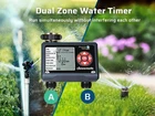 DEWENWILS Sprinkler Timer 2 Zone, Water Timer for Garden Hose, Programmable Hose Timer Faucet Watering with Automatic/Rain Delay/Manual Mode, Outdoor Irrigation Controller for Lawn, Yard Product description Mesh filter Added metal filter that can eliminate 99% of water impurities and prevent them from entering the interior to create blockages Upgraded Leakproof Design Pure zinc integrated tap connector is durable and can prevent water leakage during use Waterproof Battery Compartment The internal rubber ring around the battery tray protects the battery from moisture Big LCD Screen With 3.4" large easy to read LCD screen, details of all functions and working statuses are displayed intuitively About this item [Easy to Program & Setup] With 3.4" large easy to read LCD screen, details of all functions and working statuses are displayed intuitively, 5 program buttons make your settings easy as adjusting a digital watch, easy to select the days, start time, duration and frequency of your watering schedule, this watering timer can work throughout the summer once set up and programmed [Upgraded Leakproof Design] Pure zinc integrated tap connector is durable and can prevent water leakage during use, it supports standard 3/4 outdoor water faucet; ABS plastic shell is sunscreen and waterproof for outdoor use; the water timer for garden hose won't reduce your water pressure and can withstand water pressure of up to 120 psi [8 Programs for 2 Independent Zones] 2 zones( A and B) can be controlled independently on the same day, each zone has up to 4 watering cycles per day, this water-efficient sprinkler timer can meet your watering needs with different hoses throughout the day, ideal for sprinkler, watering or drip irrigation systems for lawn, garden, yard, potted plants, vegetable, etc. [Multiple Functions] ECO Mode allows connected devices to be on/off for a specific duration and repeat intermittently in your scheduled period, achieving deep plant watering with less consumption; Rain Delay Mode to avoid over-watering plants/flowers during rain and save water; Manual Mode is designed for temporary urgent needs without interrupting the preset auto programs [Hassle free on Vacation] Powered by 2 1.5V AA batteries (not included), the low battery indicator warning helps to replace battery in time, once forget to replace it when you are away on holiday, the hose timer for watering will keep OFF to avoid overwatering to save your garden and conserve water; when power is back on, just reset the current time, the previous watering schedules are still kept