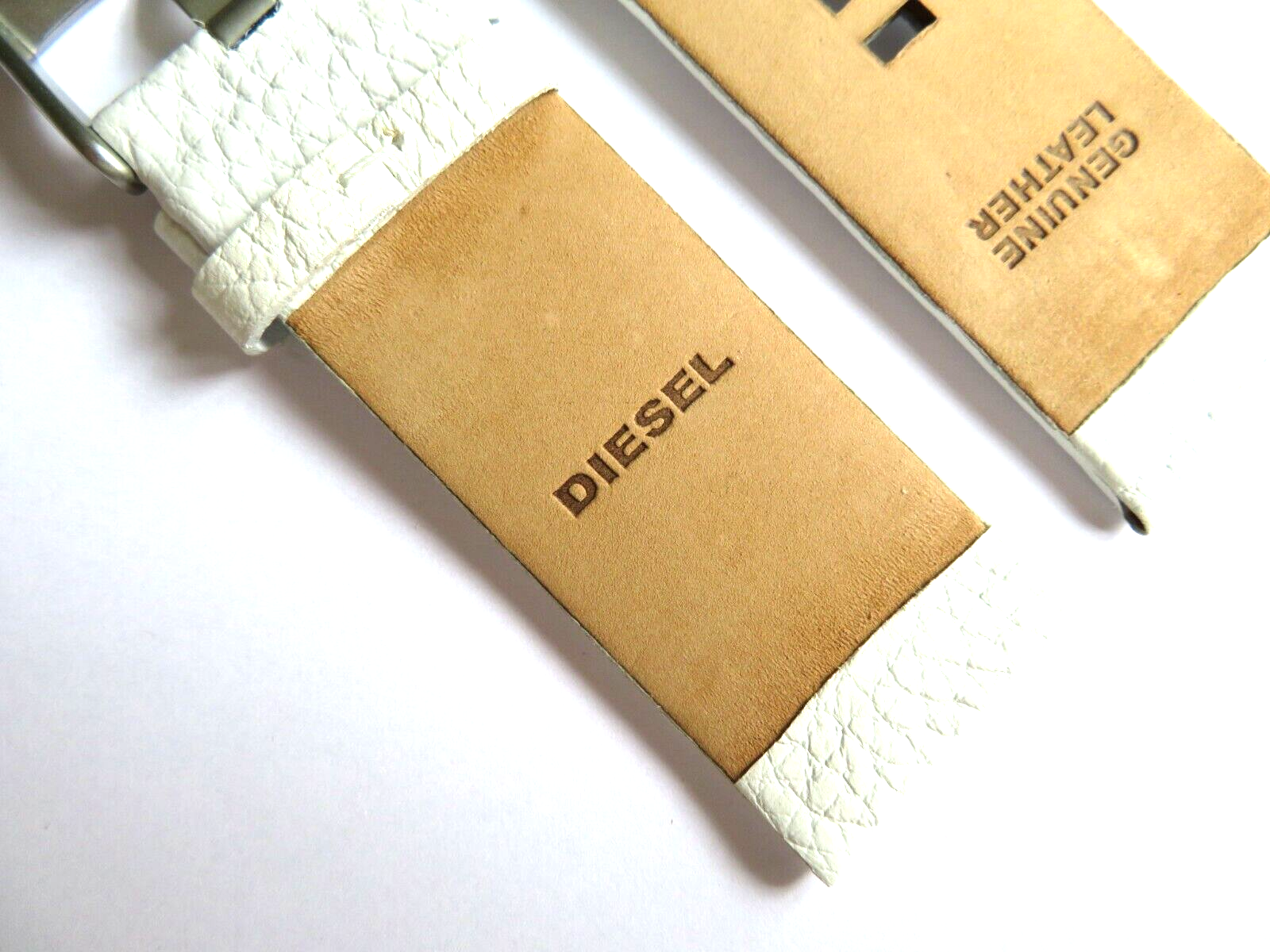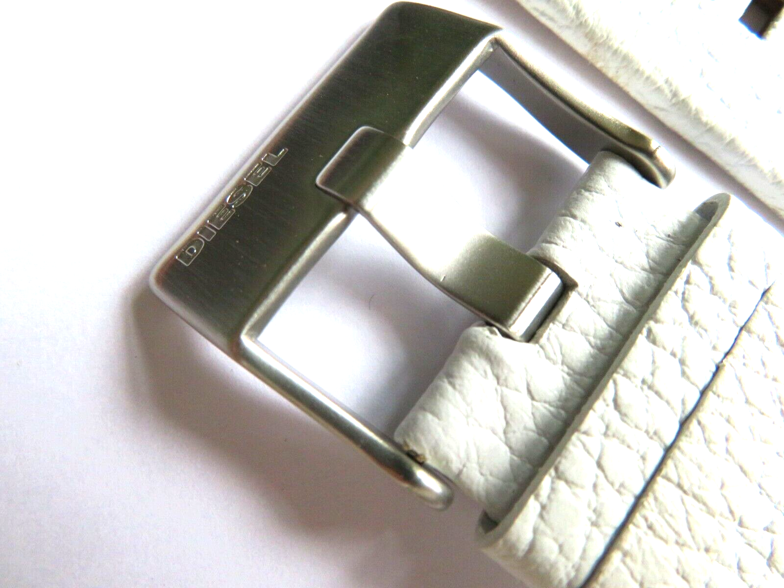Watch strap original DIESEL Also fits other watches with a 28 mm bridge width. DIESEL: Model DZ7121 Material: Leather Color: White Bridge width: 28 mm Length of the closing side: 90 mm Length of hole side: 112 mm Clasp: Stainless steel pin buckle silver Scope of delivery: Band with two bars Watch strap original DIESEL Also fits other watches with a 28 mm bridge width. DIESEL: Model DZ7121 Material: Leather Color: White Bridge width: 28 mm Length of the closing side: 90 mm Length of hole side: 112 mm Clasp: Stainless steel pin buckle silver Scope of delivery: Band with two barsÂ