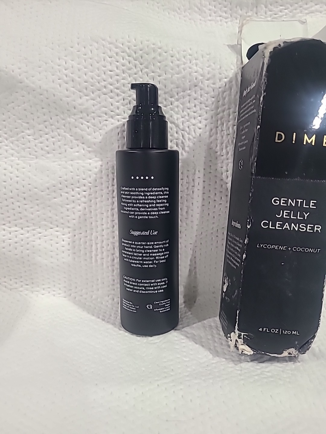 DIME Beauty Gentle Jelly Cleanser, Hydrating Facial Makeup Remover 04/26. BRAND NEW DISTRESSED OUTER BOX, ALSO ITEM DOESN'T COME WITH IT'S CAP, IT'S CAP IS CRUSHED, THAT'S WHY WE TOOK IT OFF