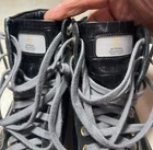 DiMighty Black/White in color with a croc print. High top style and lace up with Gray laces. & rubber sole. Made in Italy!!! A Getdown Collective. Selling online now & Retail price on these shoes is $229.99 These shoes come from Italy and are handcrafted. They are handmade by master Italian craftsman from pristine Italian leather. Each designer pair is a one-of-a-kind, combining handcrafting tradition, quality and modern style for a product that’s perfectly Italian. Cutting-Edge Design Inspired by the cool European disco clubs, these high-top fashion sneakers combine sporty looks with a cool fashionable style using high quality materials. Soles of shoes measure 10 3/4” in length and 3.5” at widest part of sole. Please compare your shoe size to mine. These shoes are in new condition & Superb!!! All my items come from a pet and smoke free home. Thanks for looking and happy bidding!!
