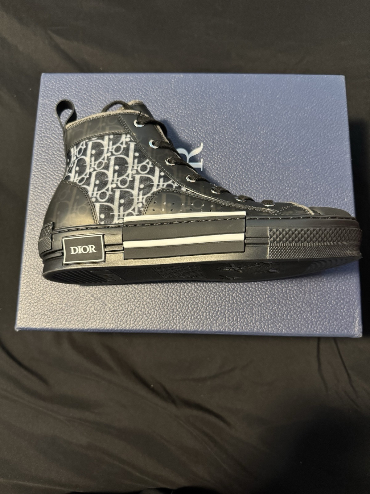 DIOR B23 Black and White, Dior Oblique Canvas with Black Calfskin Used once but i got them the wrong size they are 9 us and im a 8 so they fit big on me They are in good condition basically brand new comes with everything
