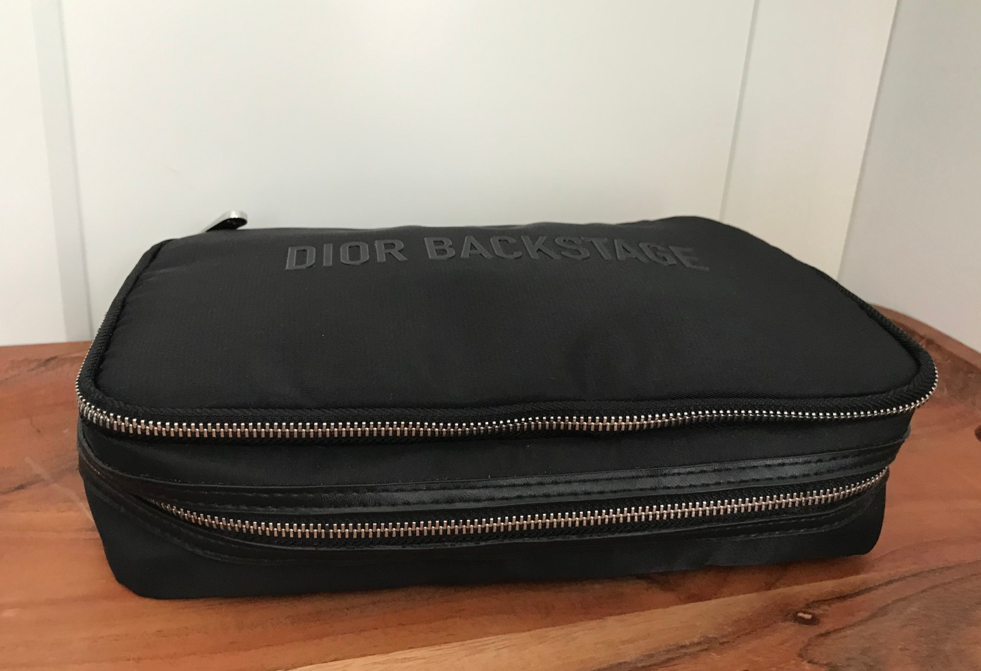 Christian Dior Backstage Black two compartments toiletry/makeup case. Silver Zippers. Brushes Top compartment 100% Polyester. Easy to clean