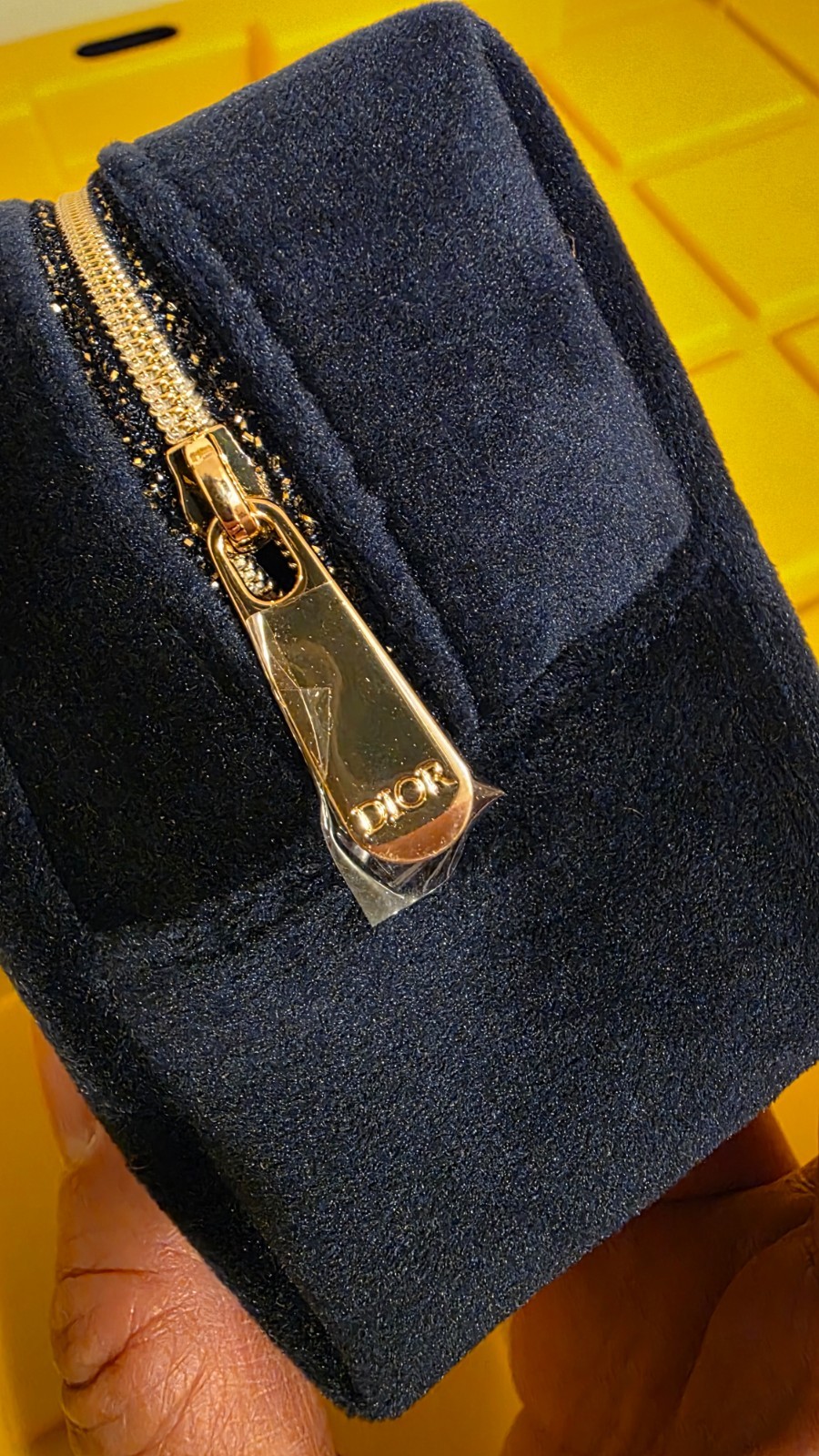 Elevate your beauty routine with timeless Dior elegance ✨This DIOR Beauty Blue Velvet Cosmetic Pouch is brand new in original packaging and features the iconic CD logo paired with a luxurious gold zipper for a refined, high-end finish. Crafted with style and sustainability in mind, the main material is made from 100% recycled materials, making it an eco-conscious luxury accessory you can feel good about using again and again.Wrapped in sumptuous blue velvet, this pouch delivers unmistakable Dior sophistication. The smooth, easy-to-clean interior lining keeps your beauty essentials protected and organized, whether at home, in your handbag, or while traveling. Perfect as a makeup pouch, cosmetic bag, or elegant clutch, this versatile piece transitions effortlessly from beauty storage to chic accessory.A truly iconic and timeless design, this pouch is a must-have for Dior lovers, fashion enthusiasts, or anyone who appreciates refined luxury. Compliments of Parfums Christian Dior, it also makes a stunning gift or collectible. Features:✅ Brand New – Never Used – In Original Packaging💙 Luxurious Blue Velvet exterior✨ Iconic CD Logo with Gold Zipper♻️ Made from 100% recycled materials🧼 Easy-to-clean interior lining👜 Versatile use: cosmetic pouch, makeup bag, or clutch🎁 Perfect gift or luxury addition to your collection Indulge in Dior elegance and add a touch of luxury to your everyday essentials. This beauty pouch is pristine, unused, and ready to enjoy.