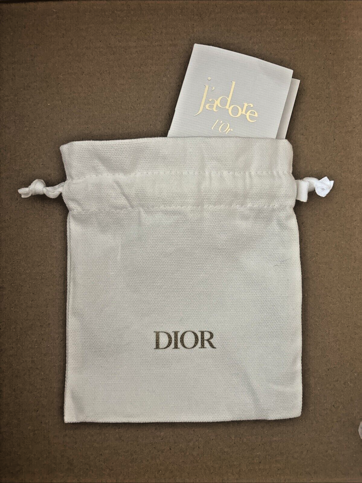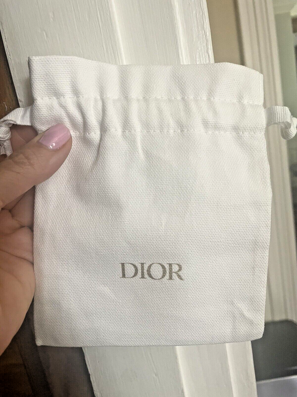 Brand new Dior Travel set Set includes: 1. Dior perfume sample fragrance vial on card 2. White Dior travel bag / Pouch with drawstrings to hold small items for travel or storage in your night stand. DIOR DESCRIBES: "The essential" A streamlined storage pouch designed to reduce waste. A 100% cotton pouch