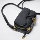 CHRISTIAN DIOR Mini Saddle Strap Pouch Overall Preloved Condition: Great Exterior Condition: Great Interior Condition: Great. Light marks. Hardware: Great Comes with original box, dust bag. - Gold-tone hardware - Black leather - Adjustable shoulder strap - Black lining with two exterior pockets - Vintage Height: 3 inches Width: 4.5 inches Depth: 2 inches Shoulder strap drop: 20 inches Made in Italy