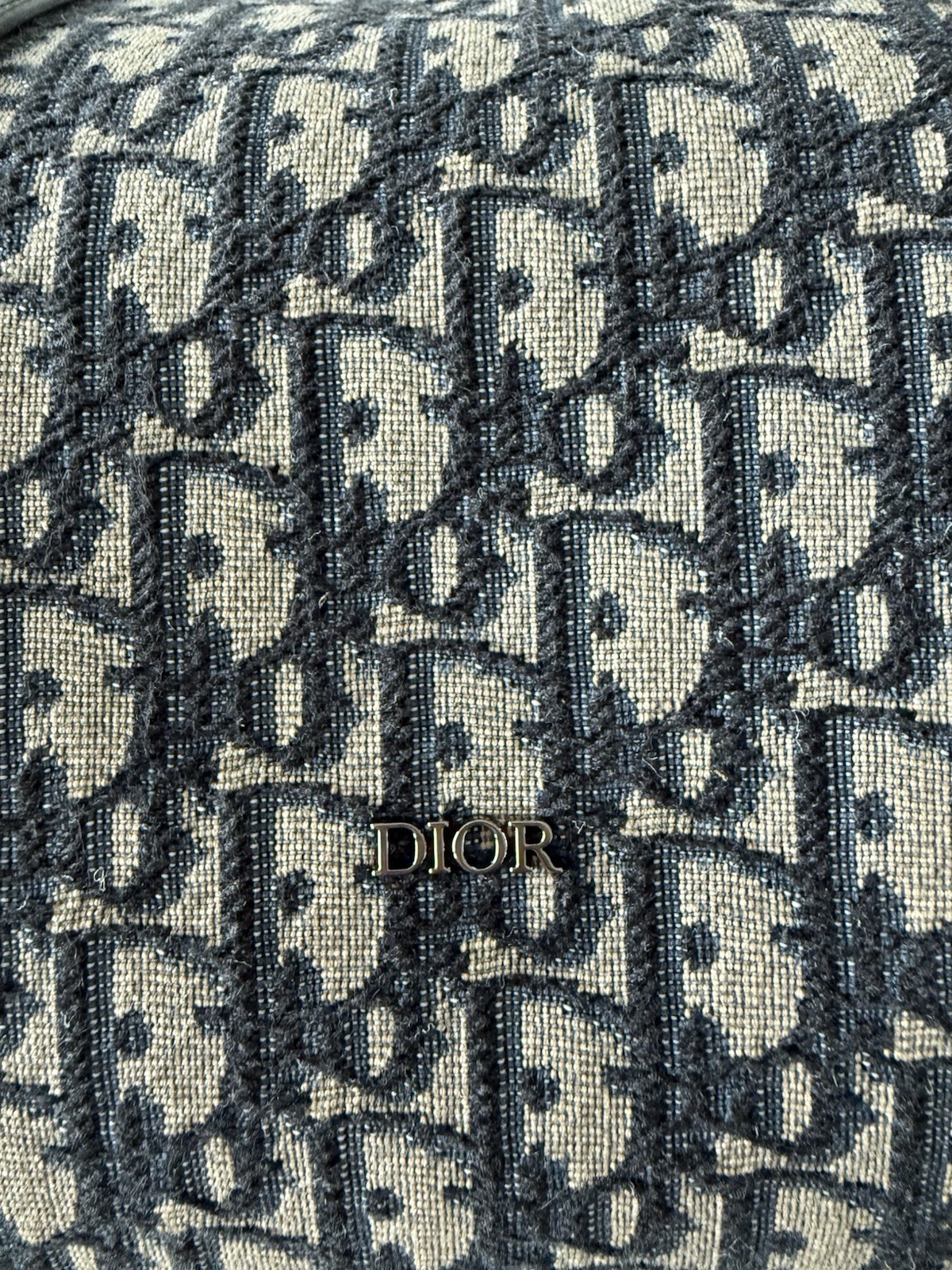 The DIOR Shoulder Duffle Travel Bag in Oblique Jacquard Canvas Blue is a luxurious travel accessory perfect for the stylish person on the go. This designer bag features a zip closure, double blue handles, and inner pockets for organization. Made with jacquard and canvas exterior material, this duffle bag exudes elegance and sophistication. Ideal for travel, this Dior bag also includes leather accents for added luxury, making it a must-have for any fashion-forward woman. Made in France, this Dior DiorTravel product is a chic and practical choice for those who appreciate high-end designer pieces.