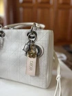 This auction is for a brand new Sealed in Box DIOR Set Silver Cannage Pocket Mirror & Rouge Dior Lipstick w/ DIOR Ribbon Charm This beautiful Dior beauty set is a perfect gift for yourself or your loved ones. Perfect for Mother's Day, Anniversaries, Birthday, Graduation, Wedding... Details: Rouge DIOR couture color lipstick Long wear 1.5 g - net weight. 0.05 oz 720 ICONE Satin * EXCLUSIVE* POCKET MIRROR with brand logo “Dior” and signature cannage detail 4" diameter Come with: a DIY DIOR limited ribbon in light peach with butterfly charm Please Note: The mirror and lipstick set is sealed. I opened a different box for picture purpose. The Lady Dior is NOT included. The last photo is stock photo. Please check my other listing! Items come from a pet & smoke free home. I ONLY ship to the USA, NO APO FPO addresses please. Pictures are of the actual item you will receive Except the last photo. All sales are final. Item will be shipped Monday thru. Friday and some Saturdays as payment received(before 1:00pm EST). Returns NOT accepted!!!