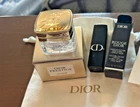Brand new Dior Travel Mini Gift set LAST SET!!! 4 pc set to include: 1. Prestige (Brand new 2025 formula!) mini size jar new in box! Has new star on the lid ($69 Value size) 2. Mini Lipstick in classic Holiday red 999 - Dior signature color! 3. Fabric travel / storage bag with Dior stamped in gold on the front (I store my jewelry inside of mine ) 4. Extra perfume sample from a Saks or Nordstrom store. New gift set great for a teen, stocking stuffer, your best friend, your girl-friend! Dior describes Dior Prestige La Crème is the first Dior triple revitalizing anti-aging cream that visibly reverses the signs of aging. It revitalizes the epidermis and the skin barrier -- rejuvenating the skin's appearance through the action of Rosapeptide. Dior Prestige La Crème is an ultra-revitalizing anti-wrinkle cream and skin-firming cream that helps restore youthful looking skin at every level: the skin matrix appears denser, the epidermis seems revitalized, and the skin barrier is visibly strengthened and protected.