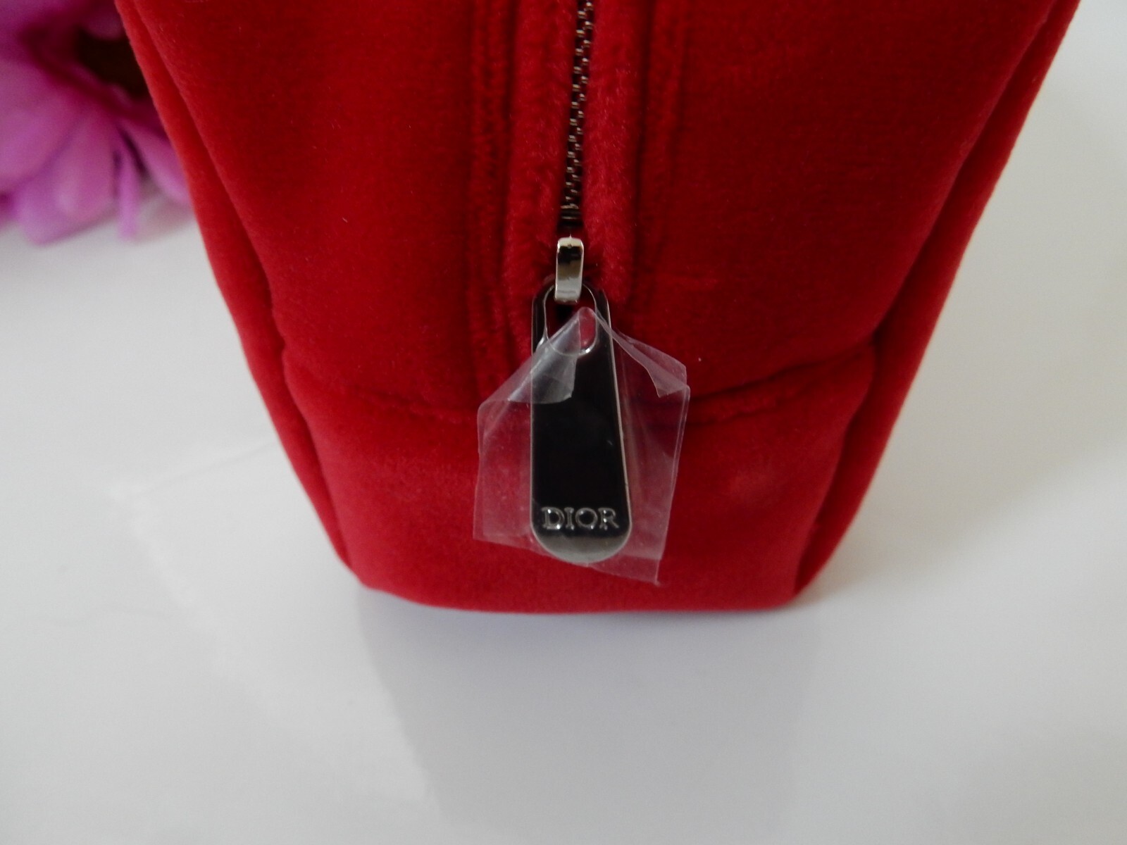 Email me with any questions and I will be happy to respond in a timely manner. Smoke free environment. Thank you for stopping by. Item: Dior RED Velvet Pouch Condition: New without tags. There is an inside DIOR tag. Size: Approx. measurements 6.5" L. x 4.5" H. Description: RED Velvet Bag with CD logo embroidered on the front. Zippers shut with a silver Dior Logo Zipper. The pouch is designed for women and can be used for any occasion. U.S. Shipping includes delivery confirmation.