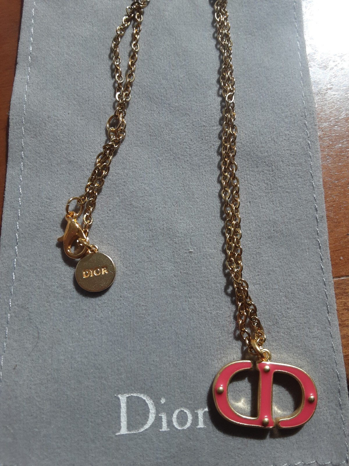 Christian DIOR Necklace. Logo CD Signature & box & dust bag Color: gold / pink Size chain :20 inch ,charm :size 0.9/ 0.6 inches