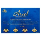 Product Details Let Ariel be part of your world with this limited-edition The Little Mermaid doll. After making a deal with Ursula the sea witch, Ariel joins the human world where she reunites with Prince Eric and ultimately finds true love. Disney artists are proud to present this distinctive Ariel doll, costumed in a lavish interpretation of her on-land peasant dress. Magic in the details Limited Edition of 5,300 Certificate of Authenticity Expressive, highly detailed sculpting Poseable Satin peasant dress with cold shoulders Chain necklace with pendant Chiffon puff sleeves and ruffled neckline Satin corset with golden filigree embroidery and satin ribbon ties Brocade overskirt with contrast trim and golden filigree embroidery Faceted gemstone studs Satin skirt Slip skirt with fine lace trim Molded shoes with satin ribbon ties Satin hair ribbon Finely styled hair Rooted eyelashes Display stand included Comes in elegant window display packaging with golden foil accents, ribbon ties and carry handle Celebrating the 35th Anniversary of Disney's The Little Mermaid (1989) The bare necessities Ages 6+ PVC / ABS plastic / polypropylene / polyester Doll: approx. 16'' H Package: approx. 18 3/4'' H x 11'' W x 5 3/4'' D Imported Item No. 416143347900