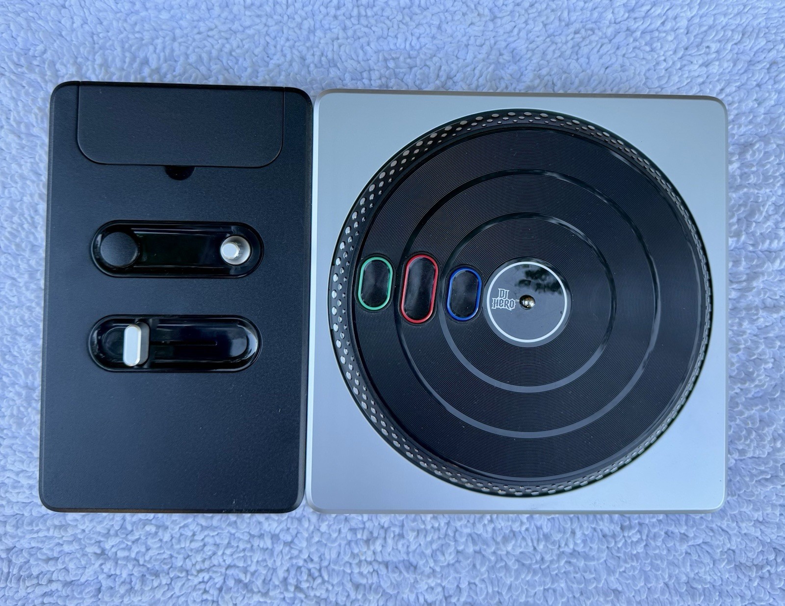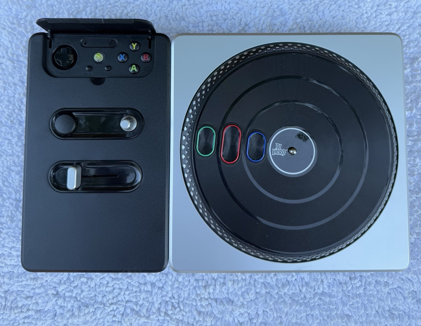The DJ Hero 2 Wireless Turntable Controller for Xbox 360 is like new condition tested and working. No disc or games, only the controller.