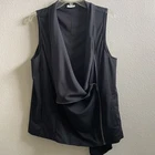 Elevate your wardrobe with the DKNY Black Asymmetrical Zip Up Moto Vest, a versatile piece that transcends seasons. Crafted from durable polyester microfiber, this relaxed-fit vest is an ideal choice for business, casual wear, or travel. Its sleek black color and solid pattern make it effortlessly stylish, while the ventilated design and full zip closure ensure comfort and convenience. The vest features a sleeveless cut with a 24-inch length that provides ample coverage for all occasions, from a day at the office to an evening out. Pit-to-pit measurement 20’ (measured in the back). The vest is adorable as well as practical, offering multiple opportunities to wear it on top of anything, from T-shirt to long sleeve to even a dress. Whether it's a brisk spring evening or a chilly summer day, this vest is a year-round go-to.