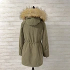 DKNY size small Anorak jacket in the color “loden”. Zip Front. Attached sherpa lined hood with detachable faux fur trim. Slip hand pockets. Optional waist draw cords. Full length sleeves with inner rib knit cuffs. Leather brand patch on left arm. Quilted lining. Bust: 20.5”, Length: 30.5” Shell: 83% Polyester, 17% Polyamide Lining & Fill: 100% Polyester EUC!! Retail: $289.00