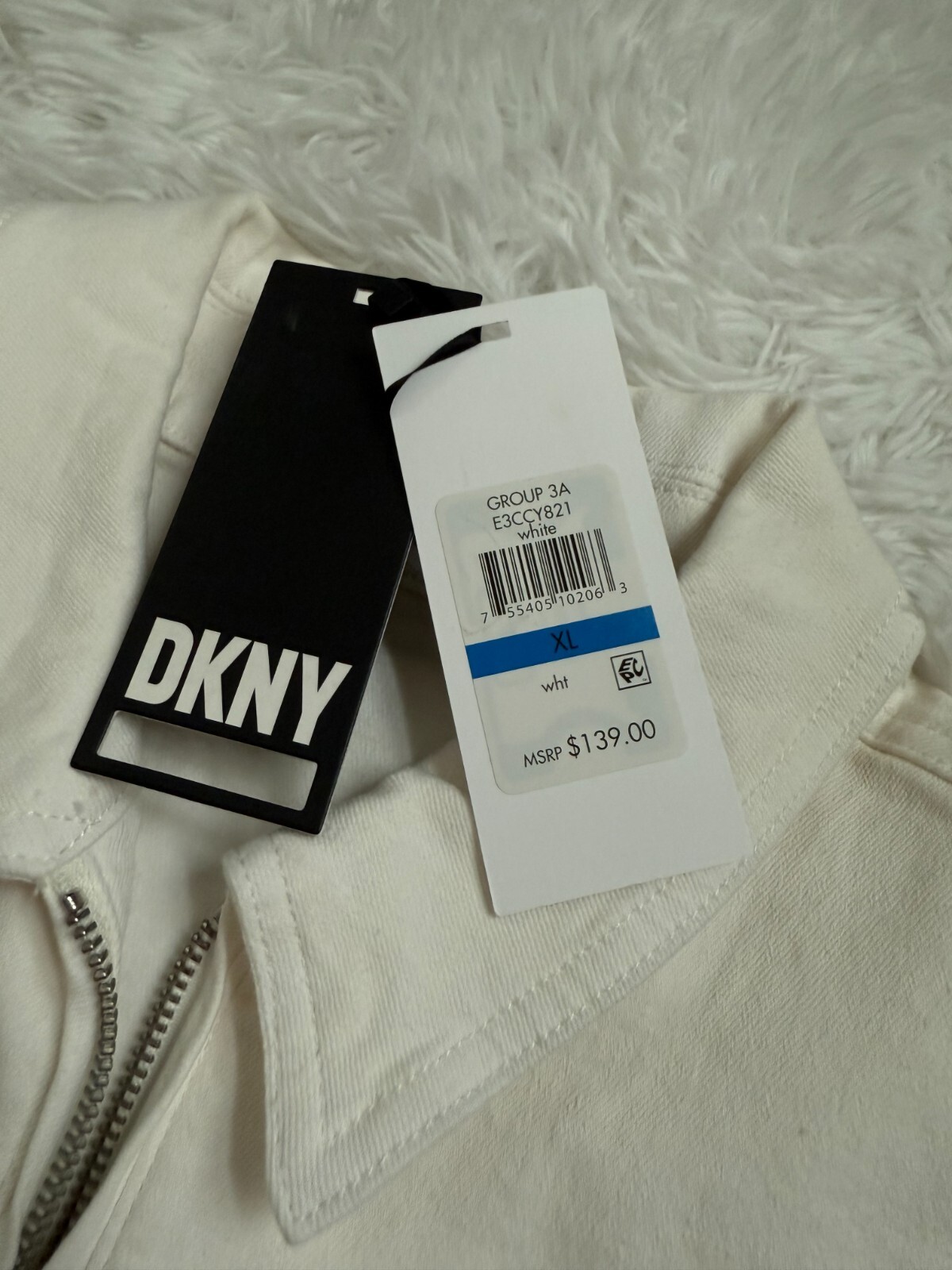 Elevate your wardrobe with this original DKNY women’s jacket , blending timeless design with modern edge. Whether you’re heading to work, traveling, or out for the evening, this jacket brings the perfect combination of fashion and function. Authentic DKNY Design : From the renowned New York fashion house, known for chic urban style. MSRP $139 – high-quality materials and construction. Tailored Fit : Designed to flatter with structured lines and a comfortable silhouette. Seasonal Versatility : Lightweight yet cozy, ideal for layering in spring, fall, or cooler summer nights. Premium Features : Zipper, functional pockets, and attention to detail throughout. Brand: DKNY Original MSRP: $139 Condition: New (if applicable)