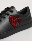 DOLCE & GABBANA Shoes Black Leather Crystal Heart Low Top Sneakers EU37/US6.5