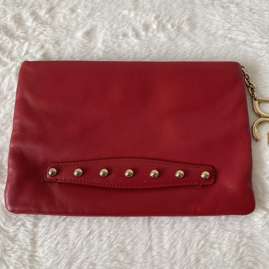 Absolutely love this clutch! The vibrant red leather with studs makes such a statement, and it's surprisingly spacious inside. Despite minor wear on the hardware, it's in fantastic condition and feels so luxurious. Perfect unisex design, and shipping was quick. A total steal for the price!