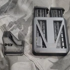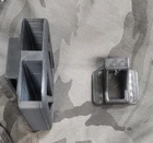 The product is a double magazine pouch designed specifically for the Kel-Tec P17 .22LR pistol. It includes a belt clip for OWB or appendix carry and is made of PET plastic. The set includes a double magazine holder and a speed loader double magazine holder, both custom made for this model. With a 3D print finish, the pouch is waterproof, lightweight, and weather-resistant, suitable for shooting activities. It is designed for holding two magazines securely on a belt for quick and easy access during shooting sessions. MAGAZINES NOT INCLUDED SHIPPING WITHIN USA ONLY.